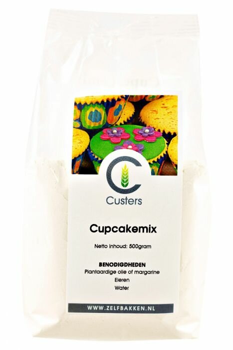 Meng de cupcakemix met de margarine(soepel gemixt) of met olie. Voeg vervolgens het water en het ei toe en mix alles 2 minuten(op stand 2) tot een glad beslag. De muffinvorm of papieren cupcakevormpjes naar wens vullen. Verwarm de oven goed voor.