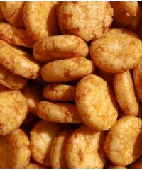 rijst, suiker, rijstolie, gemodificeerd zetmeel (tapioca), sojasaus (SOJA, TARWE, zout), zout, kleurstoffen (E160c, E 150c), zoethoutpoeder, smaakversterkers (E627, E631), kleurstof E150c.